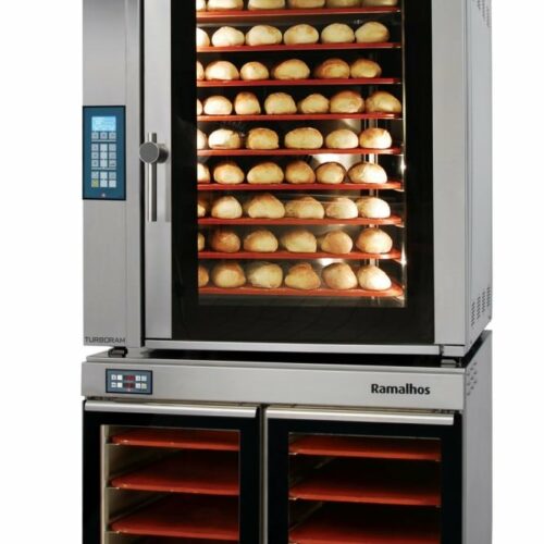 Four ventilé Turboram RAMALHOS entièrement en INOX Pour 10x grilles 600x800 ou 20x grilles 400x600 Panneau de commande électronique LCD 40 programmes de cuisson mémorisables Double vitesse de turbine Première chauffe automatique Année 2016 Options comprises : Hotte Turboram 800x600 avec extracteur Piètement Turboram en INOX pour 4 plaques 600X800 (photo de piètement non-contractuelle) Utilisation dans un Show-Room ==> État neuf Valeur neuf : 9930 € HTVA Prix CF : 5200€ HTVA